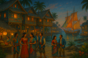 Carmona カルモナの雰囲気・景観 ケトゥマ島、カルモナの港に近づくと、最初に聞こえるのは波の音ではない。それは 多言語のざわめきだ。南洋語、ディング語、シーブル語、そして遠方の港の言語までが、潮風に乗って一度に耳へ […]