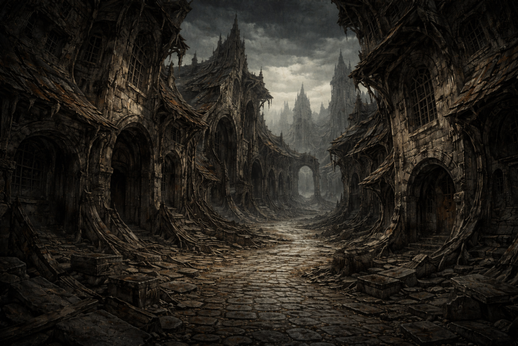 グリムデールは、かつて都市”ロザルアイアン”であった痕跡を色濃く残す、崩壊と沈黙の地である。