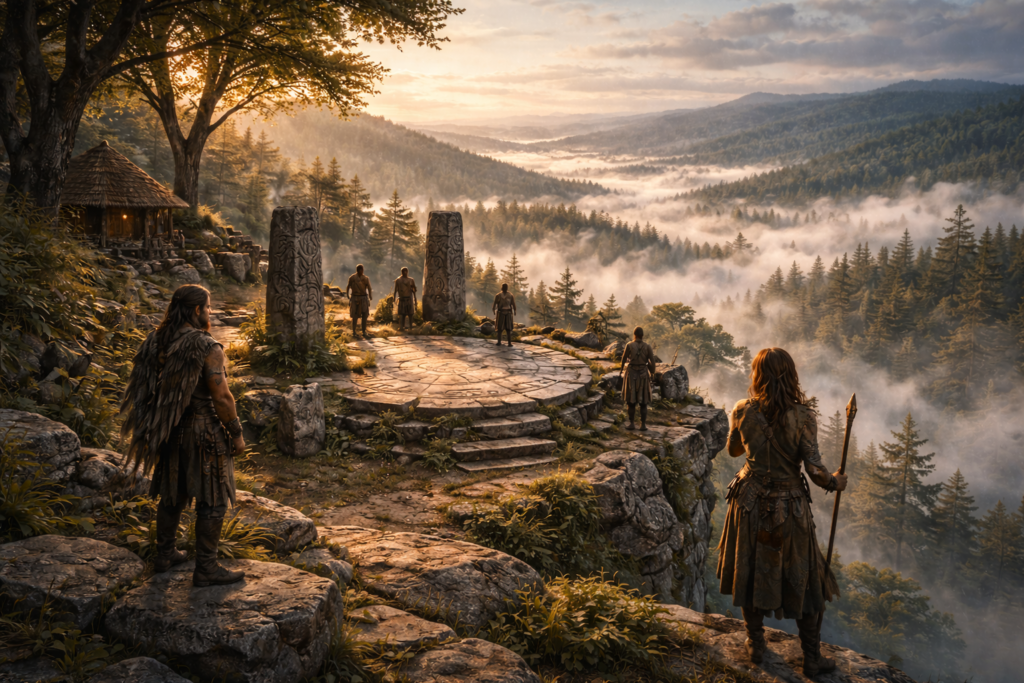 アスフィルは、森の海を見下ろす山上都市である。