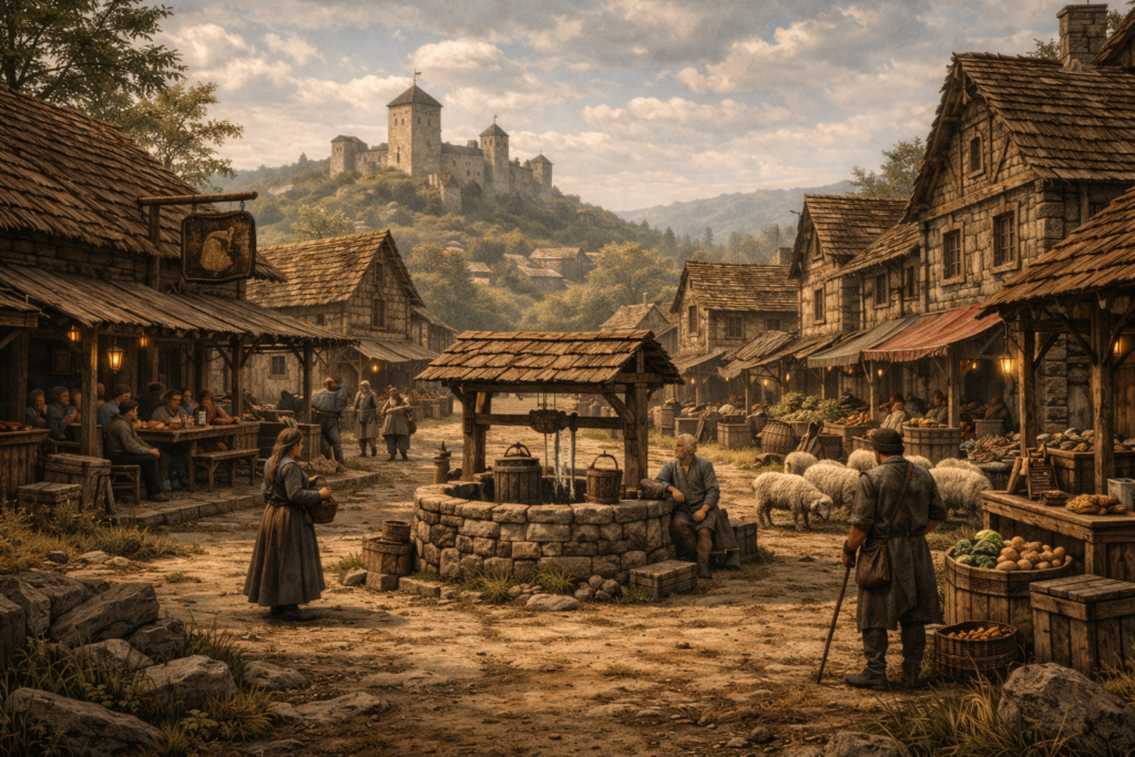 井戸のある広場が自然と村の中心となり、農具屋や小さな酒場ができ、現在の村の形が整った。