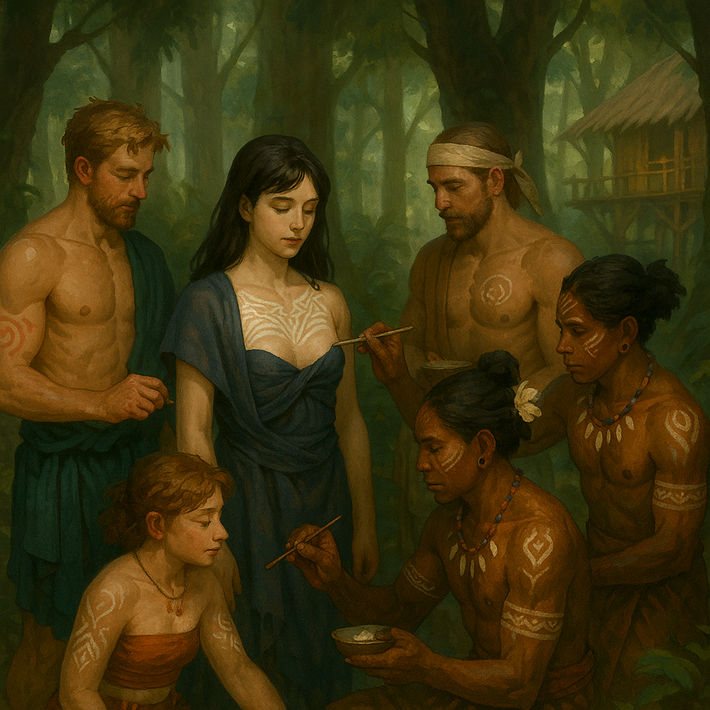 島の民は独自の文様文化を持つ少数民族で、白い肌の人種と南洋民族系の人種の両方が存在している。