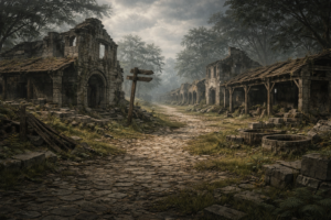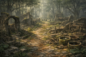 Enzo Ruins 雰囲気・景観 石畳の市場広場は割れ、屋台跡と焼け落ちた梁がそのまま残る。建物は「崩れた」のではなく、途中で破壊行為が終わったかのような状態だ。 風は通るが、人の生活音が入り込む余地はない。霊的異変や […]