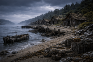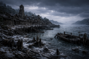 Delmia 雰囲気・景観 海に面した低い浜辺と、その背後に並ぶ小さな家屋跡。石と流木で組まれた住居は崩れかけ、屋根は失われ、壁には白い塩の跡が残っている。 港と呼ぶにはあまりにも小さな桟橋は、途中で折れ、杭だけが海面か […]