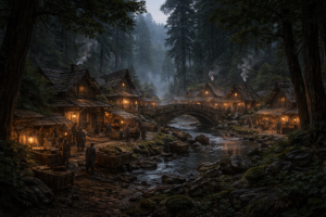 Tiranyl 雰囲気・景観 深い森林の只中、川に沿って延びる街道の両脇に、木造家屋が連なって広がっている。元は小さな集落だったが、旅人、行商人、木こり、猟師が定住するにつれ、村は次第に“町に近い規模”へと膨らんだ。 建 […]