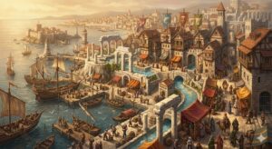 アストランド人が最初に入植した場所のひとつで、今日では自由都市として知られています。この都市は、独自の法律と経済システムを持ち、周辺国との貿易港としての役割を果たしています。シーブルは多様な文化が交差する場所でもあり、アストランド人だけでなく、異国との交流も盛んです。